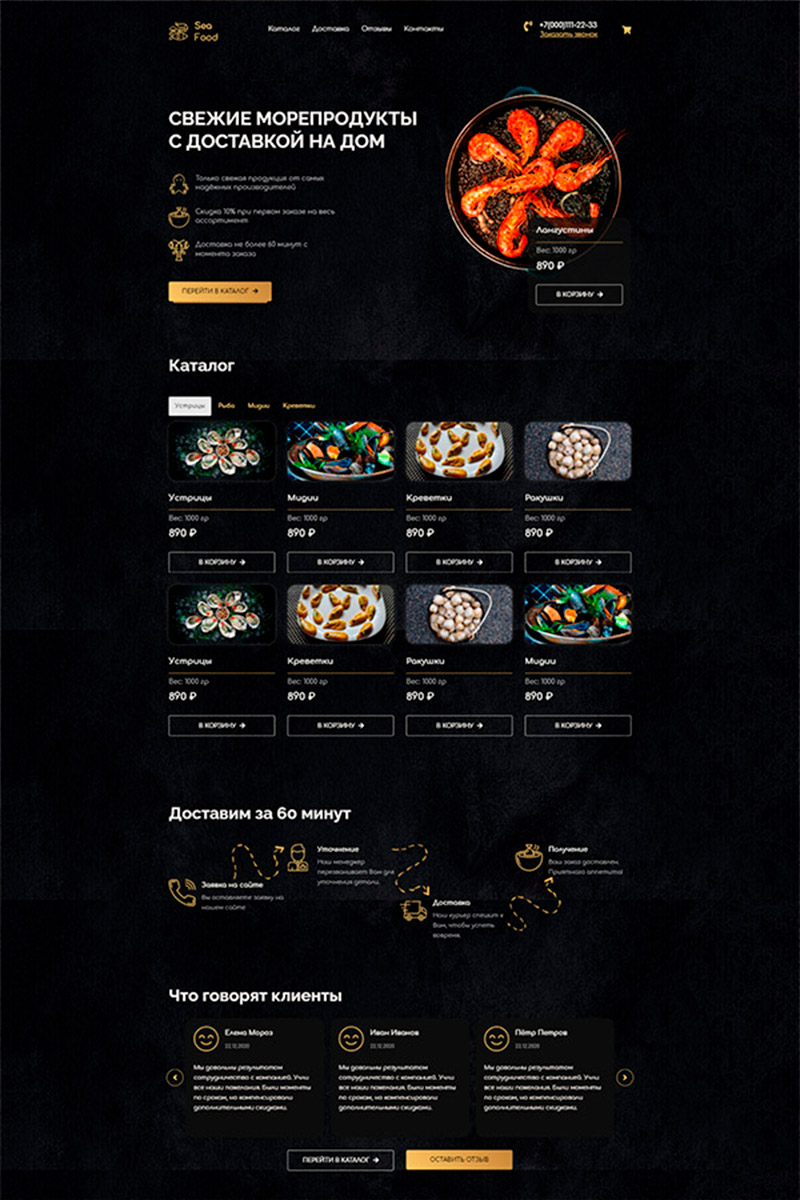 Разработка сайта под ключ для доставки морепродуктов