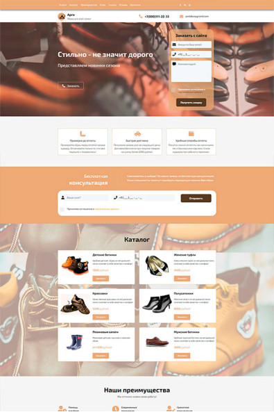 Лендинг (Landing) для тематики “Одежда и обувь”