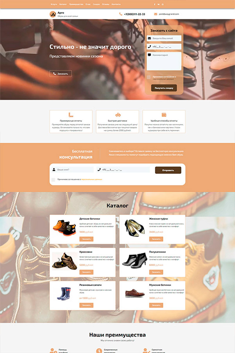 Создать сайт для стильной обуви бесплатно самому на конструкторе
