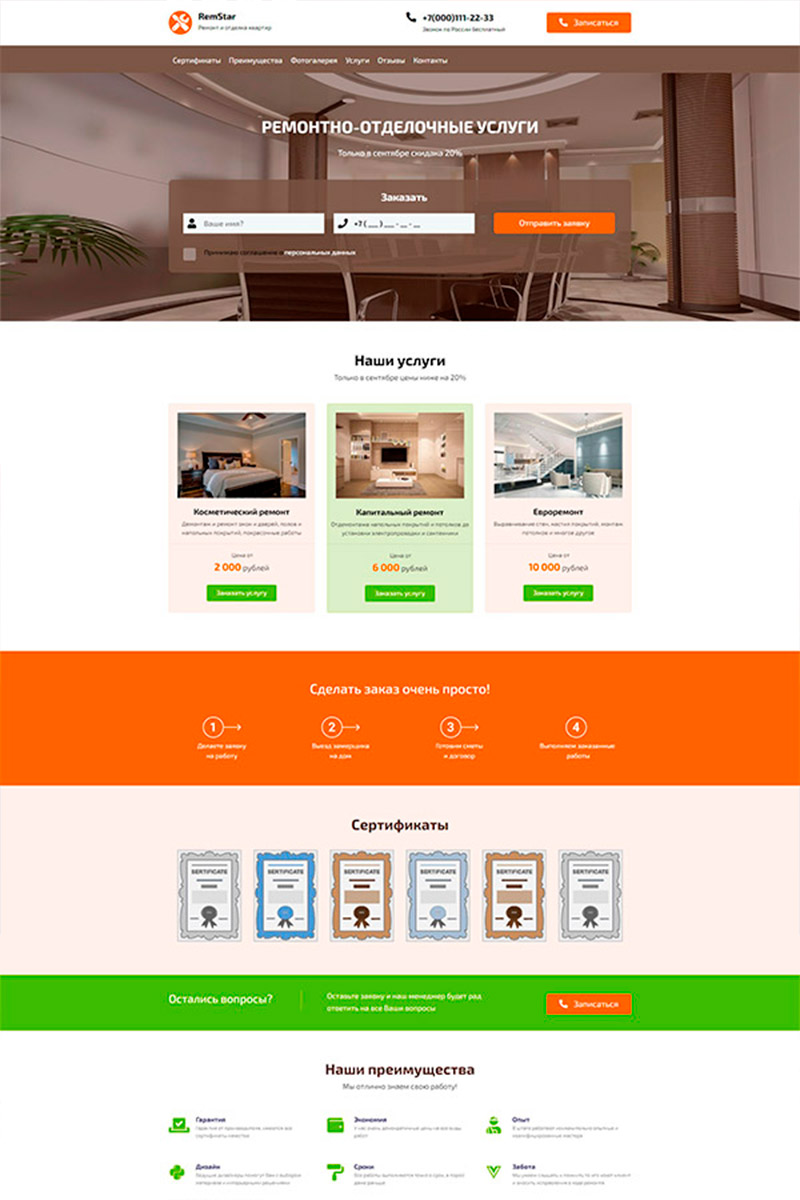 - Продающий сайт с профессиональным дизайном, как у лидера рынка ремонта