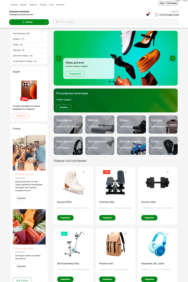 Мы создали универсальную платформу каталога, разработанную с учётом стандартов интернет-торговли, требований к удобству пользователей и алгоритмов поисковых систем. Это не просто сайт — это полноценный каталог товаров, который привлекает покупателей и автоматизирует процесс демонстрации продукции.
