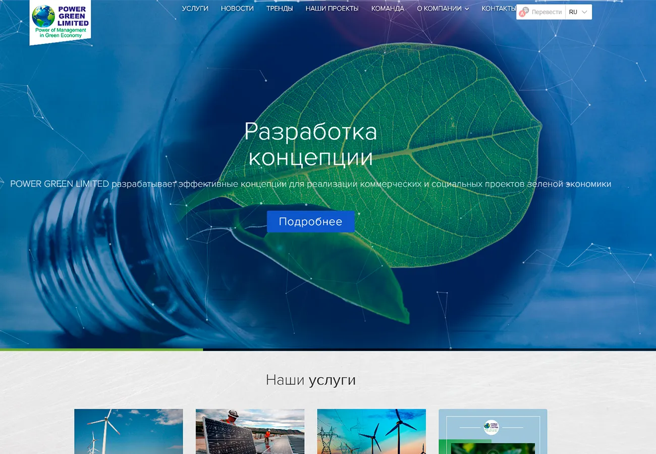 - Разработка ресурса с информацией о компании, её услугах, товарах, работах, команде. Есть система новостей и доступ к разделам с личным кабинетом.