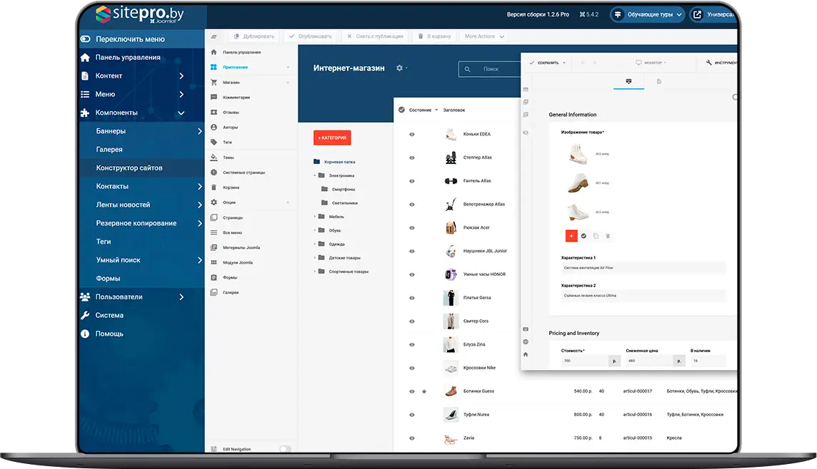 Помощь с контентом: Содействие в обновлении страниц, массовом импорте/экспорте товаров и настройке доступных функций вашей панели управления.