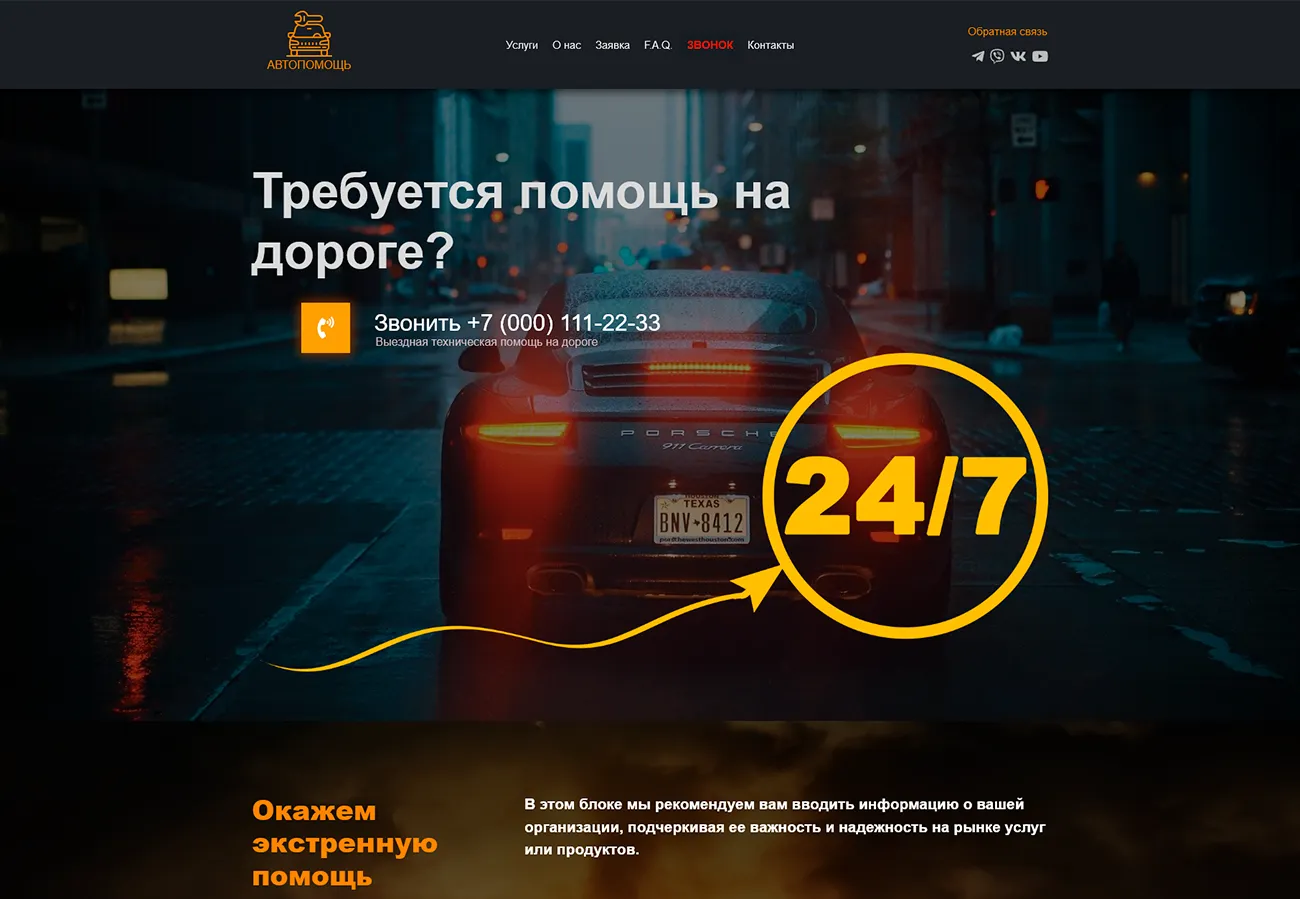 - Одностраничный сайт с фокусом на продажу или привлечение внимания к одному продукту/услуге. Обычно до 7 секций и форма обратной связи.