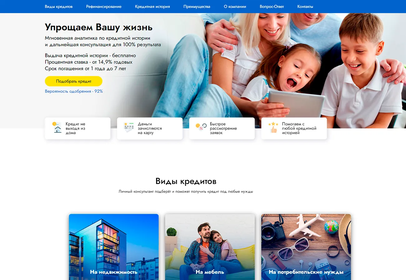 Лендинг (одностраничник) → Собирать заявки на услугу или консультацию.