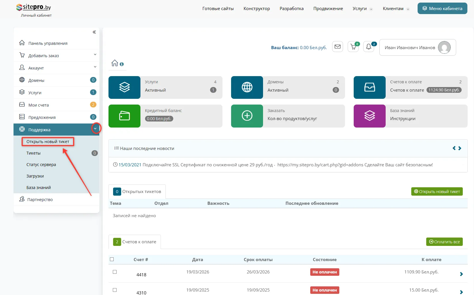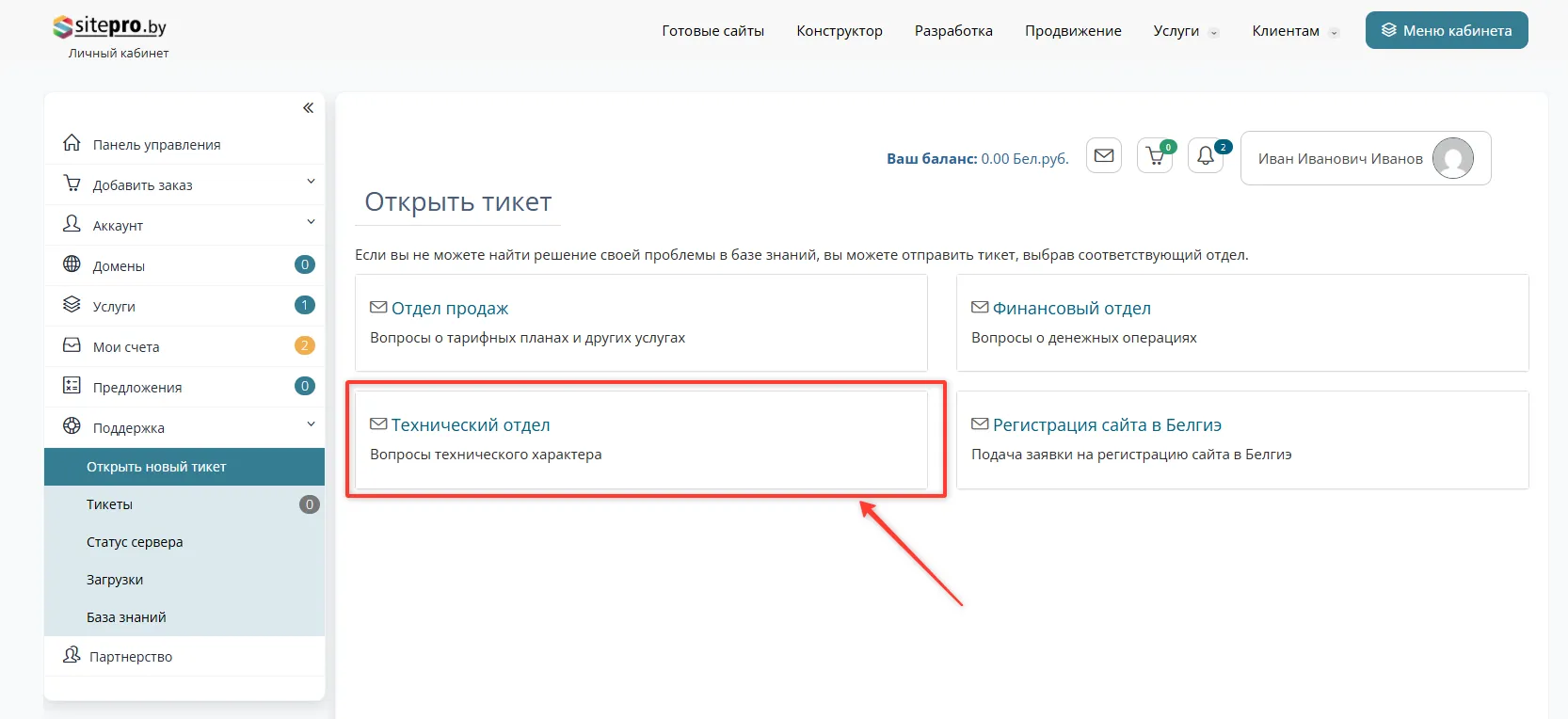 1. Войдите в ваш личный кабинет и выберите пункт "Поддежка", далее выберите "Открыть новый тикет" как войти в личный кабинет или зарегистрироваться