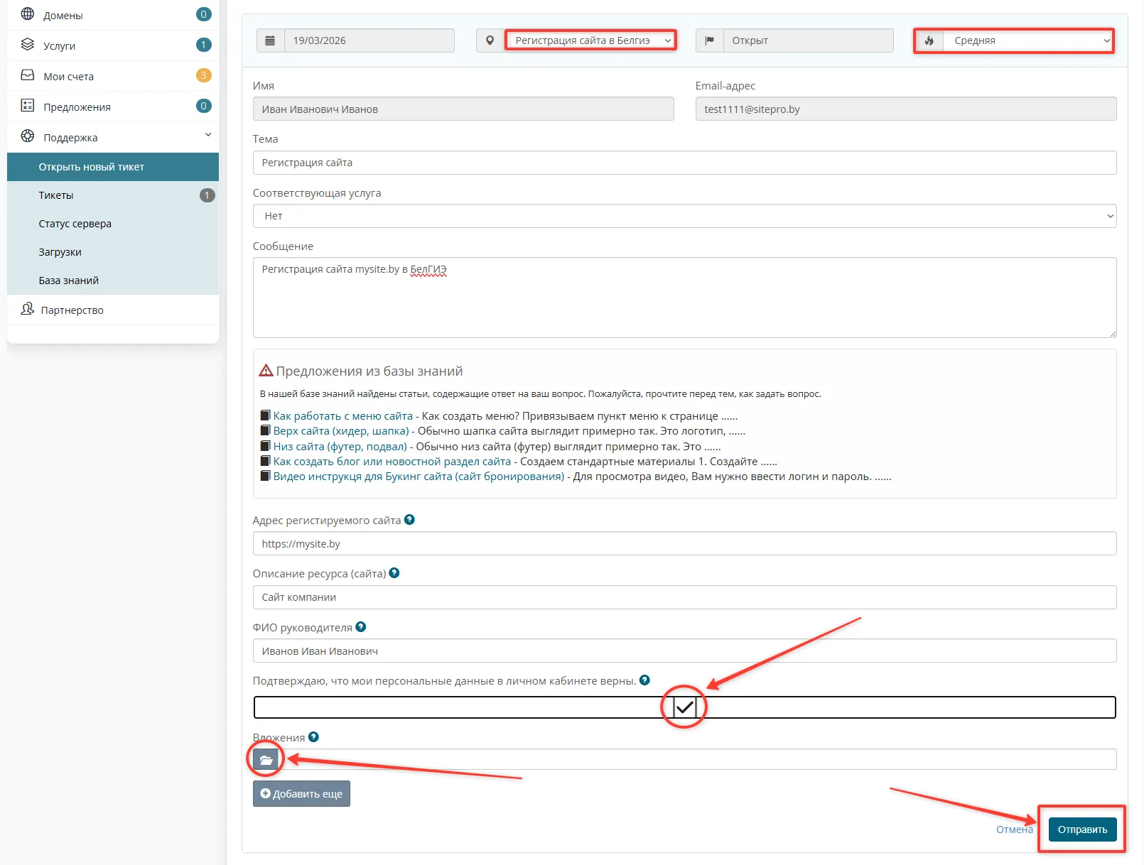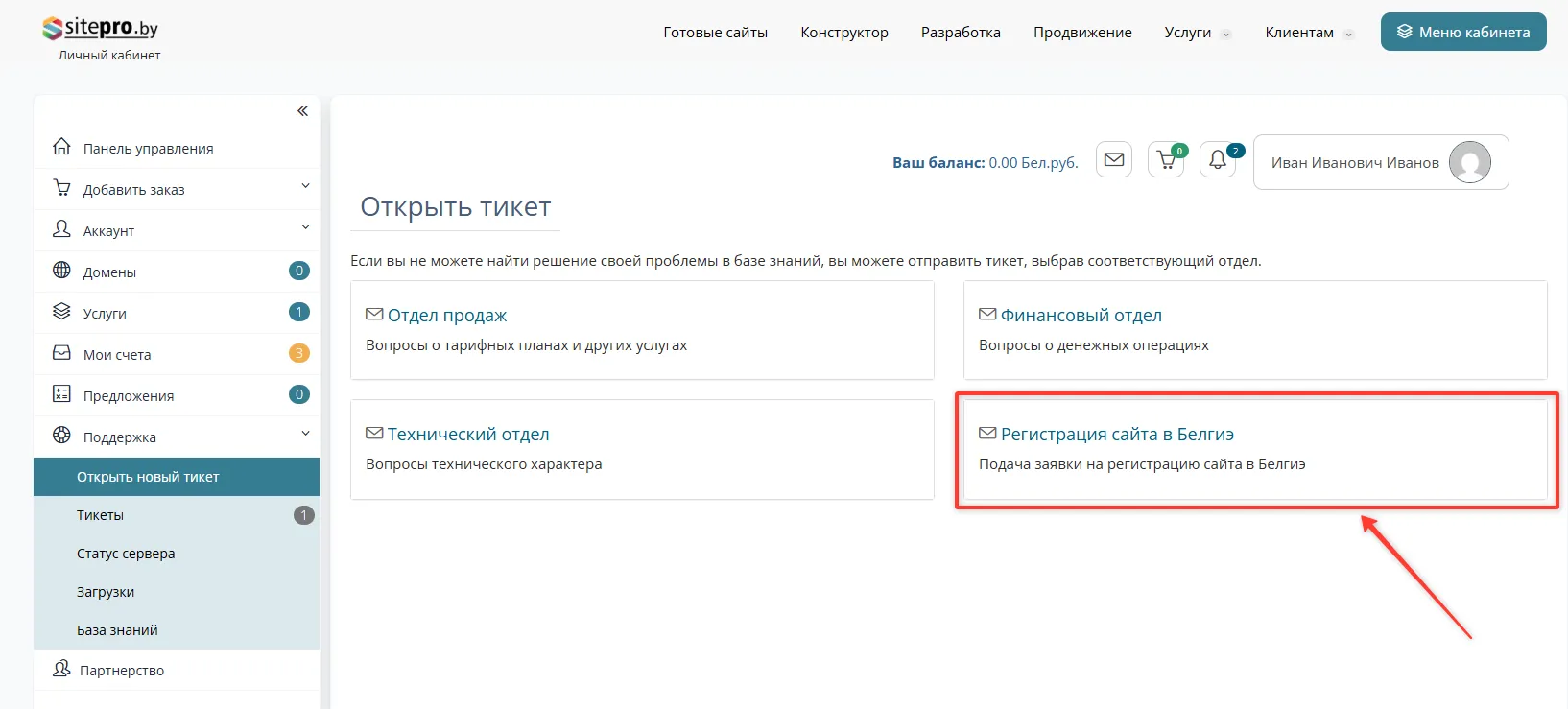 Чтобы подать заявку на регистрацию сайта в БелГИЭ через личный кабинет клиента, следуйте этой инструкции: