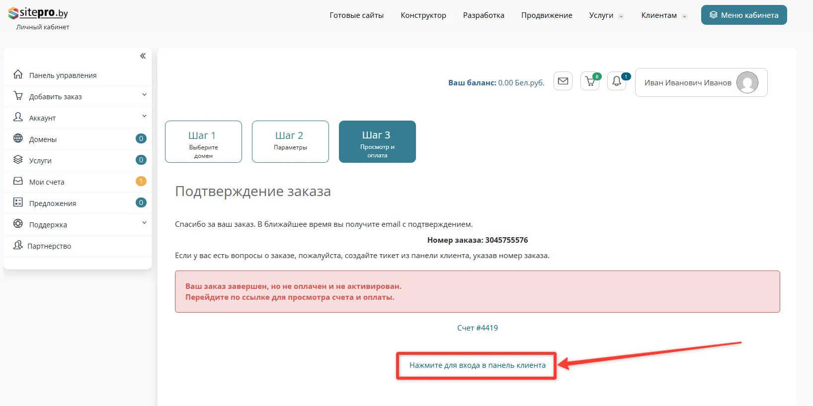 5. В следующем окне нажмите кнопку входа в панель клиента