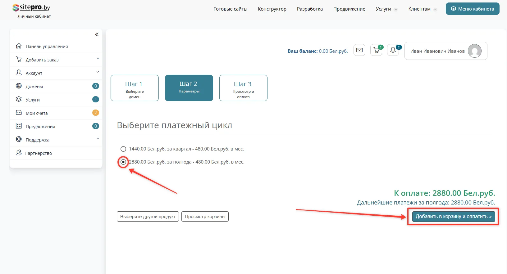 3. Выберите платёжный цикл и нажмите "Добавить в корзину и оплатить"