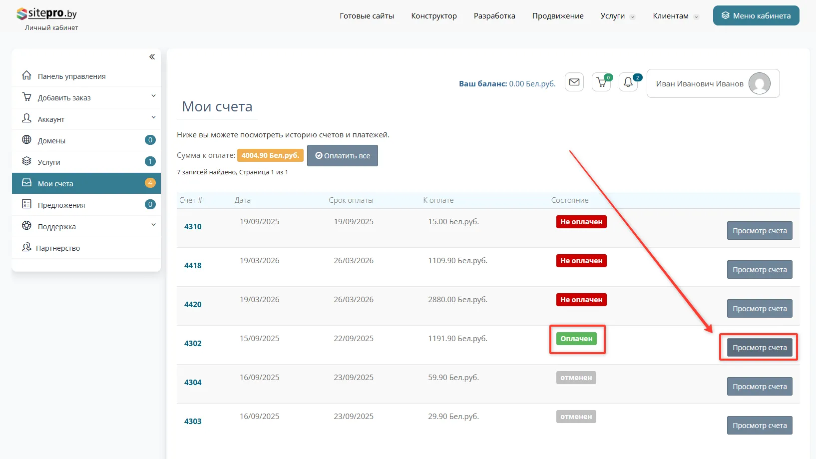 Чтобы оплатить счёт в личном кабинете смотрите эту инструкцию