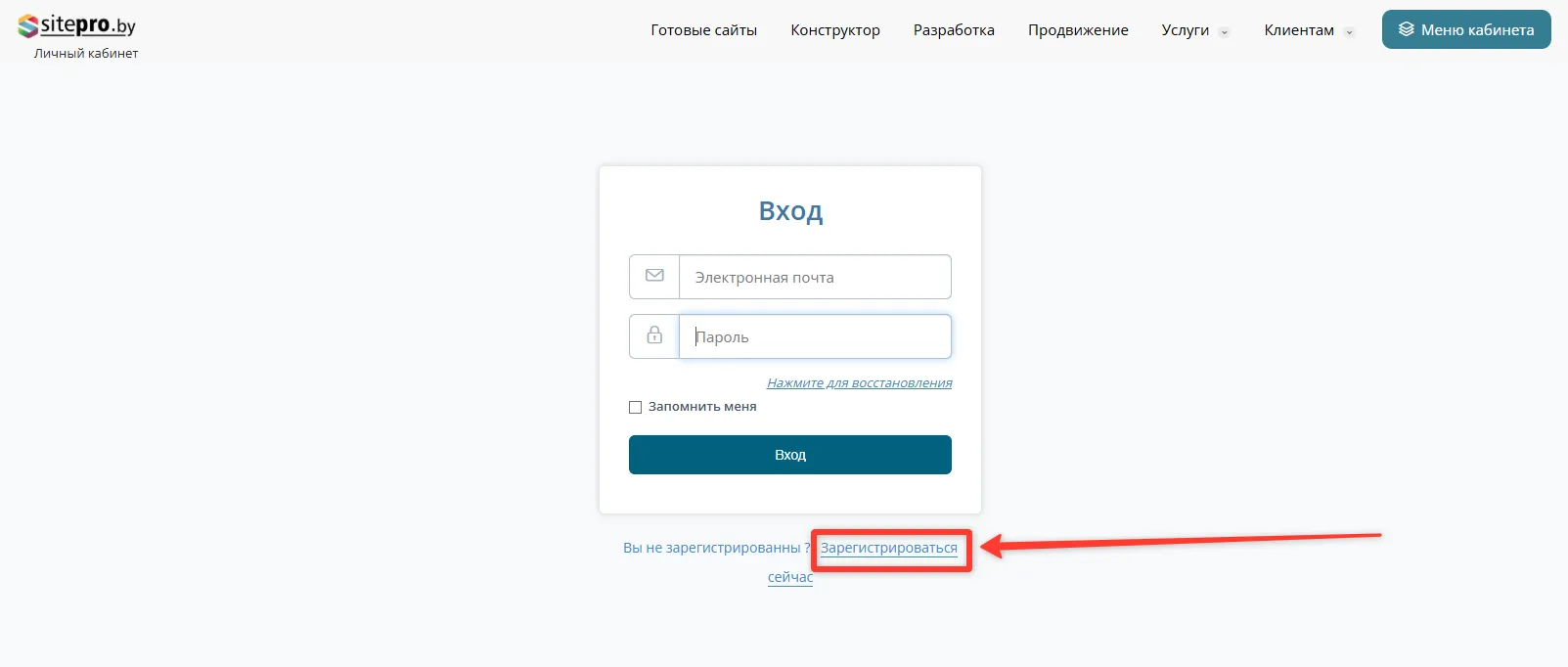 1. Чтобы зарегистрироваться на сайте и создать свой личный кабинет, нажмите кнопку "Личный кабинет"