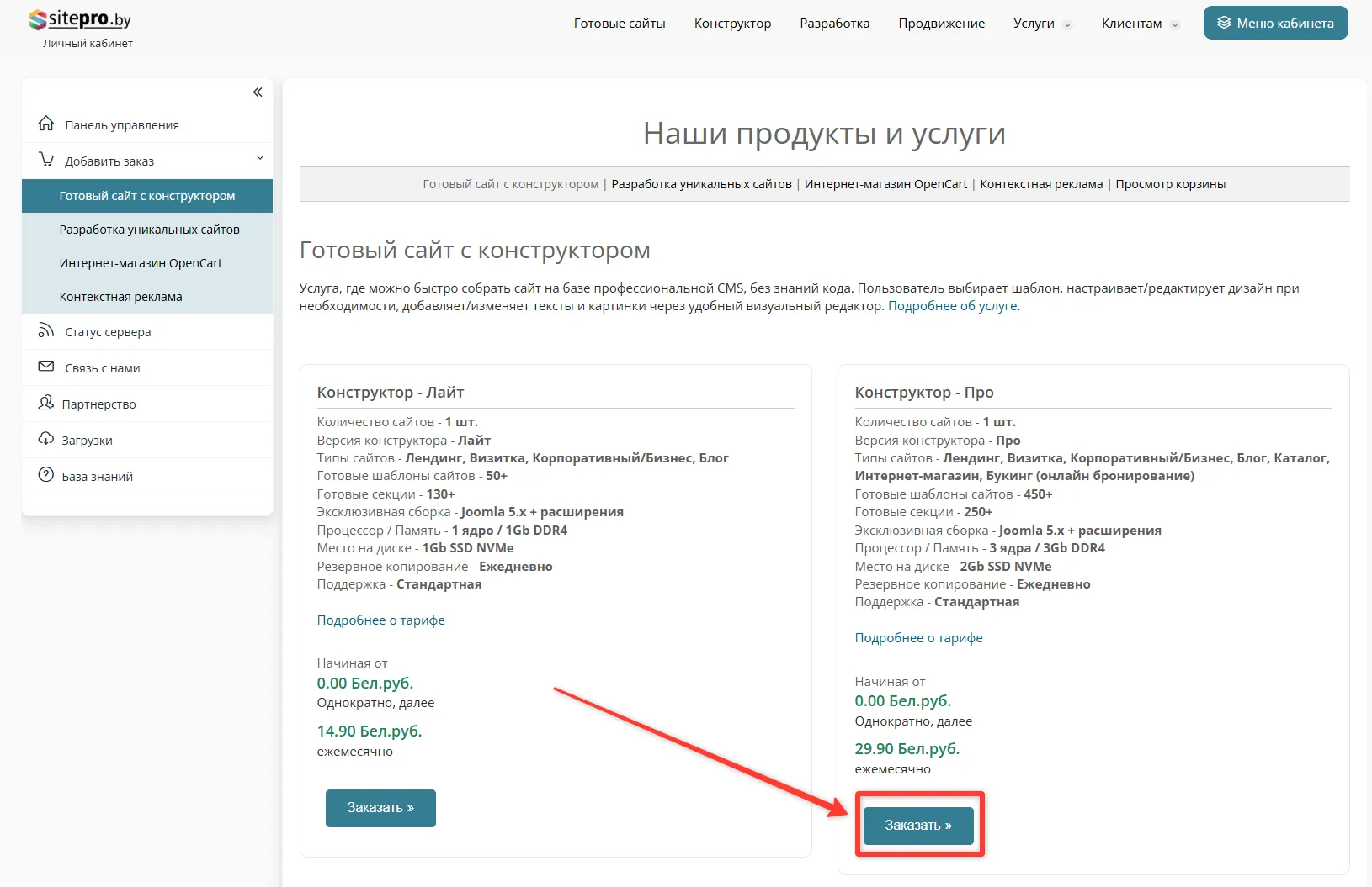 4. Выберите тариф и нажмите кнопку "Заказать"