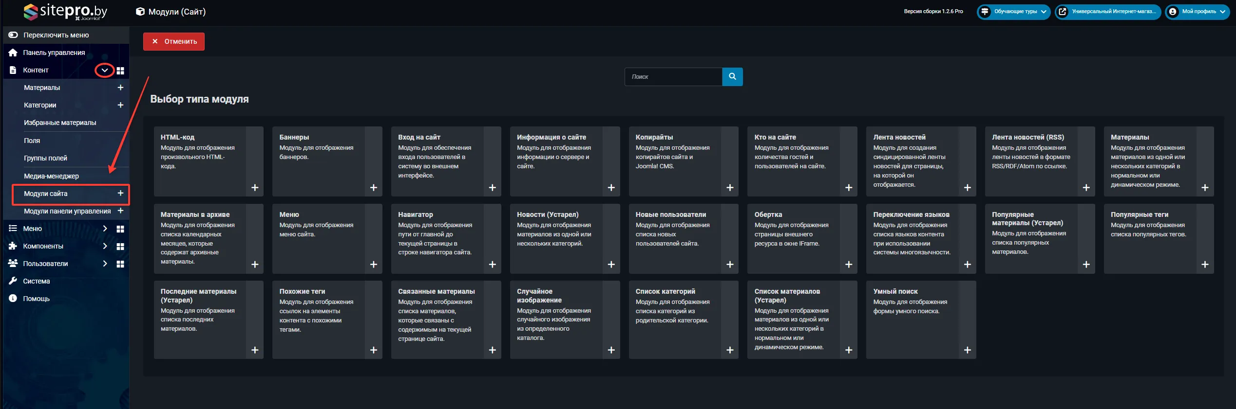 CMS модули сайта - это стандартные инструменты Joomla для вывода динамического контента на сайт