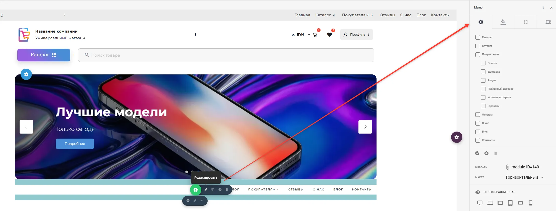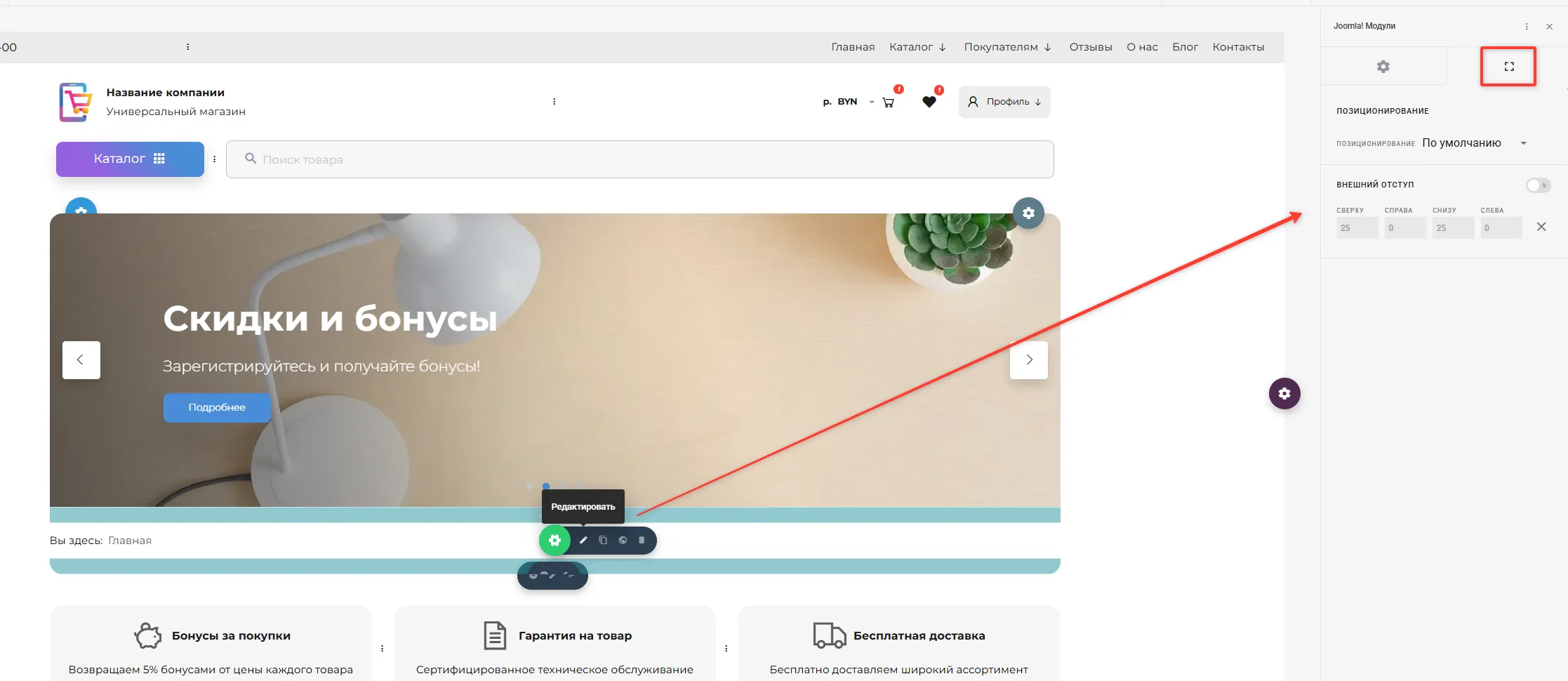 Настраиваем внешний вид модуля в боковой панели конструктора