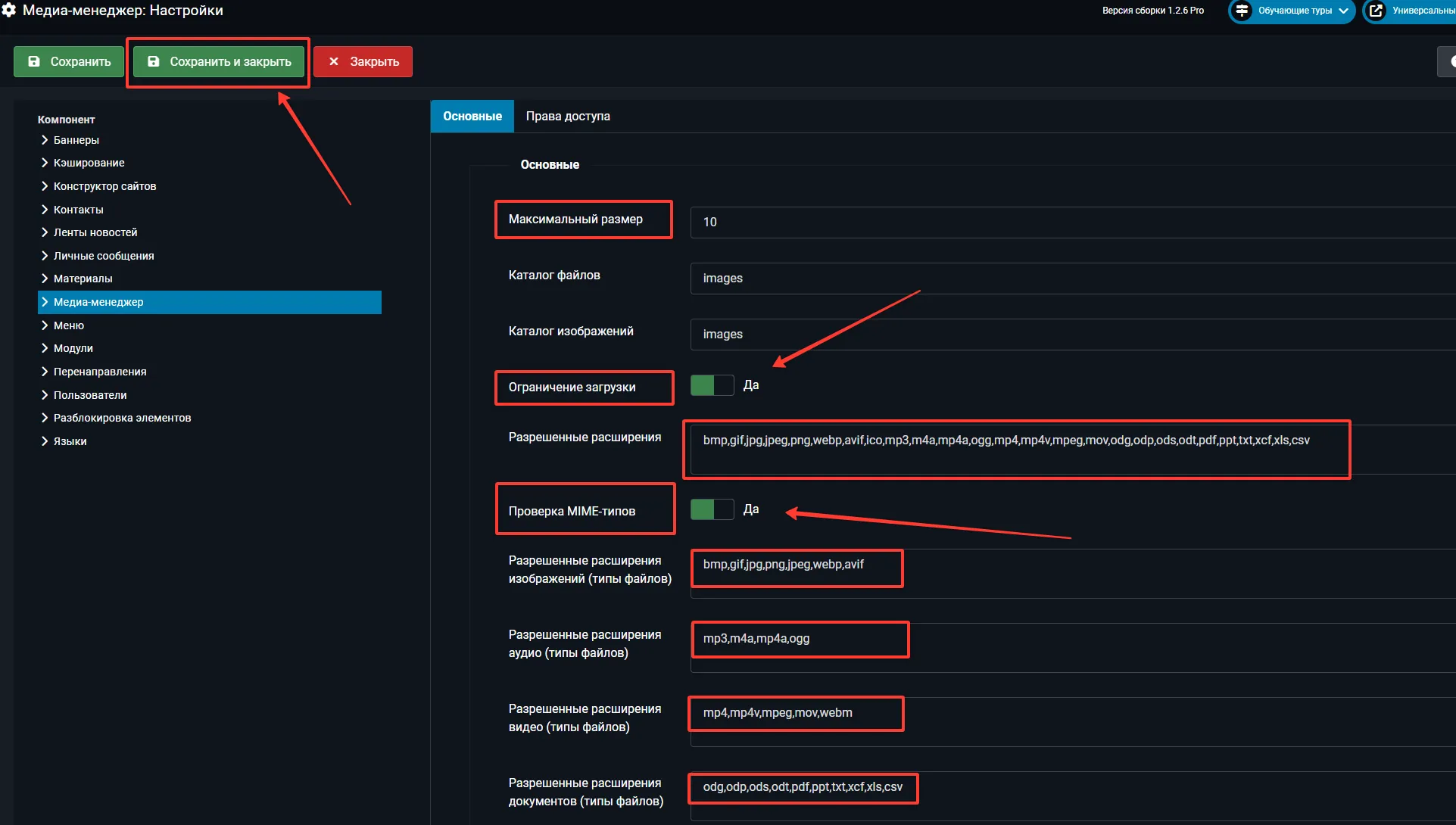 Настройте параметры под ваши нужды и нажмите "Сохранить и закрыть"