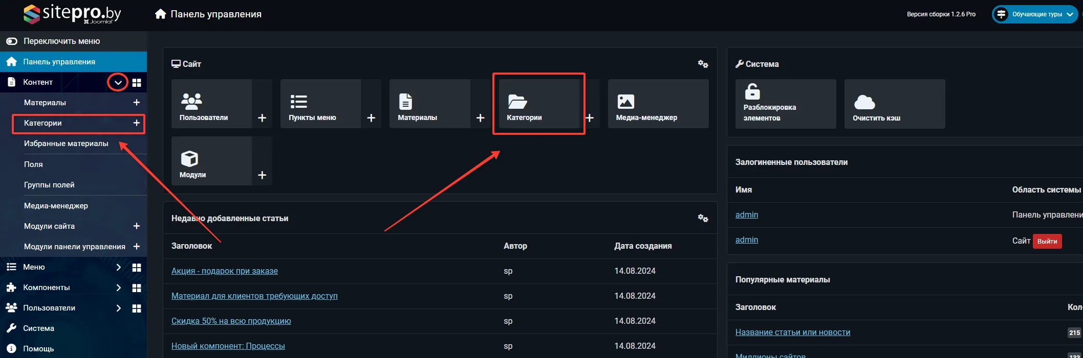 Зайти в категории можно двумя способами, как показано на скриншоте