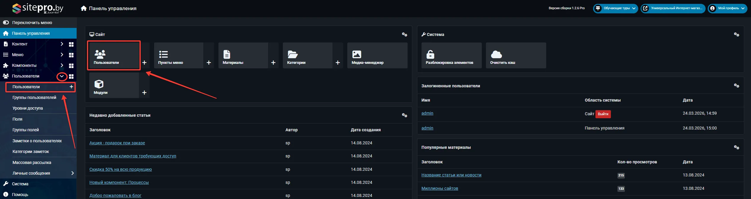 - В модулях: любой модуль (меню, баннер, форма) можно ограничить по уровню доступа — это позволяет показывать разный контент разным аудиториям.