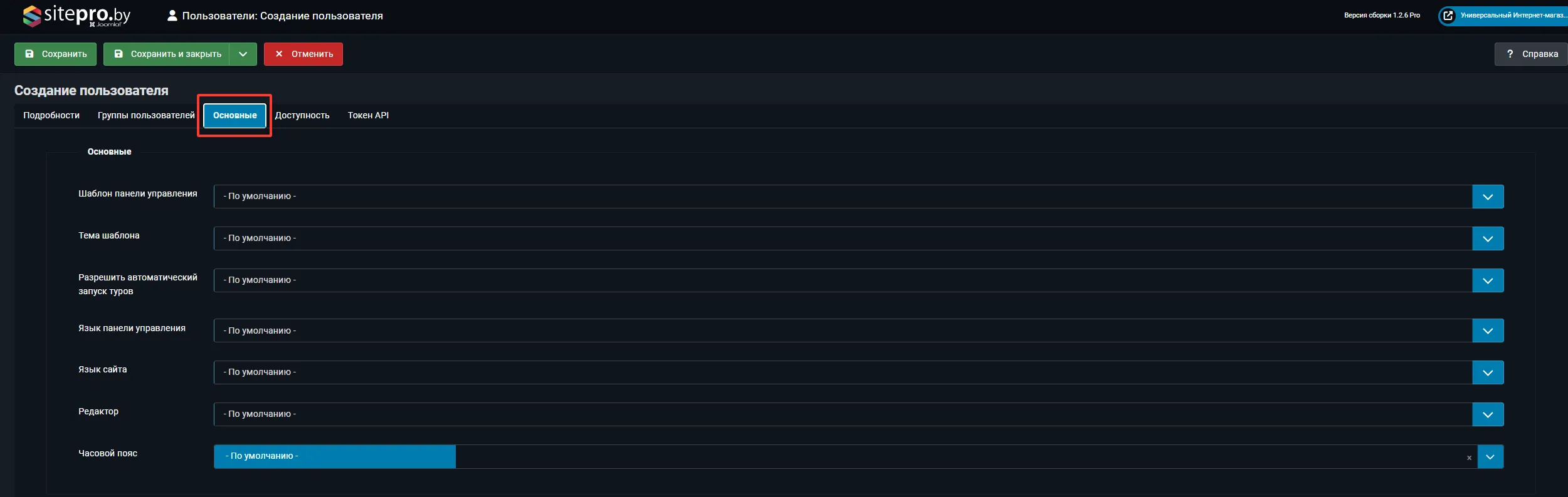 При необходимости настройте дополнительные параметры: язык интерфейса, временную зону, блокировку пользователя.